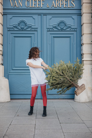 J'ai shooté Fanny, chanteuse à Paris, qui se promène et danse avec son sapin dans les rues illuminées. Elle se cache dans des cadeaux géants, mange un burger au village de Noël des Tuileries, rit toute seule. Elle n'a besoin de personne pour profiter de la magie de Noël. Elle EST la magie.